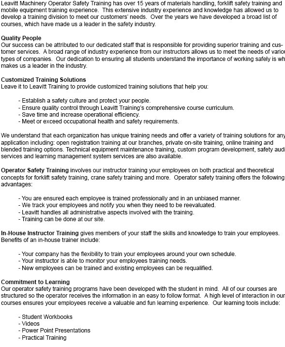 Our large number of programs should ensure that you will find the right one for you or your personnel. Additionally, we offer you two options for training. We can provide it on-site or at our place of operations. Our experienced team can tailor our instruction to your specific equipment at your location of operations.